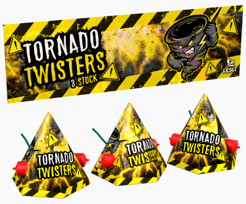 Spinnendes Spektakel! Pfeifend, sich drehend und mit grün knisternden Lichtern schießen die Tornado Twisters blitzschnell nach oben. Ein Wirbelwind voller Spaß!