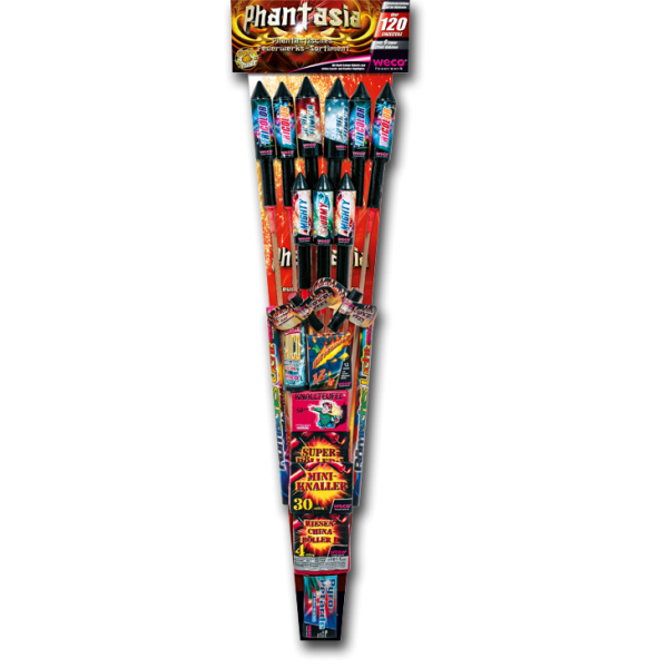 Familien-Sortiment Mit ca. 124 Einzelteilen, 15-fach sortiert. Inklusive 9 Super-Effekt-Raketen mit Multicolour-Buketts